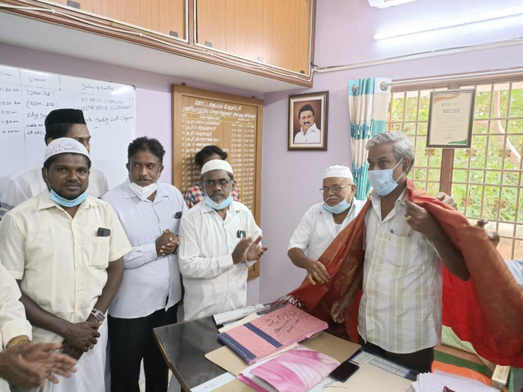 முன்னதாகவே புதிதாக கோட்டக்குப்பம் பேரூராட்சியில் செயல் அலுவலராக பொறுப்பேற்றுள்ள செயல் அலுவலர் அவர்களுக்கு வாழ்த்து தெரிவித்து மாவட்டத் தலைவர் வி. ஆர். முஹம்மது இப்ராஹிம், மாவட்ட துணை செயலாளர் அமீர் பாஷா, மாவட்ட இளைஞரணி தலைவர் பிலால் முஹம்மத், நகர செயலாளர் முகமது பாரூக் ஆகியோர் முன்னிலையில் பொன்னாடை போற்றி வரவேற்கப்பட்டது.