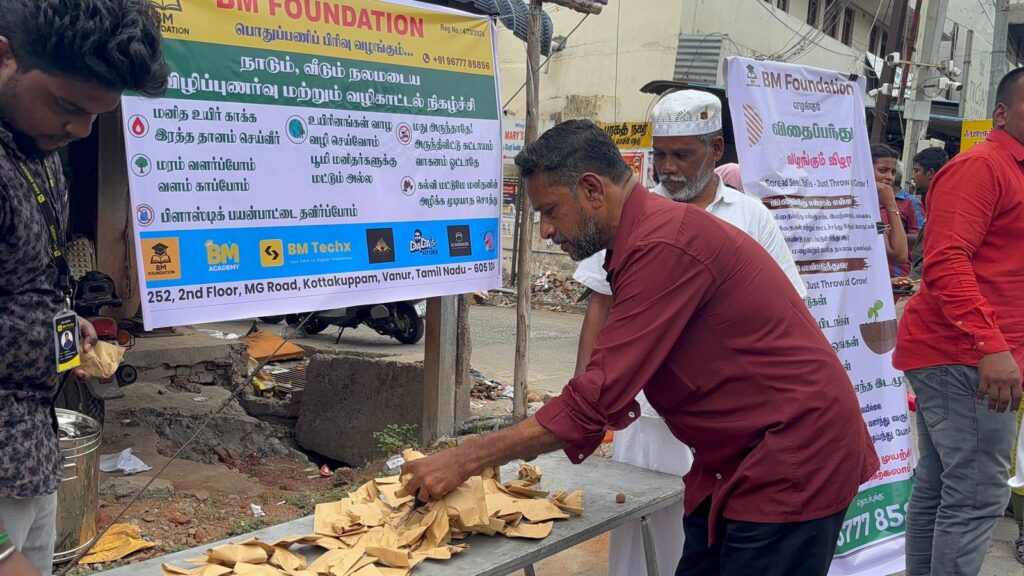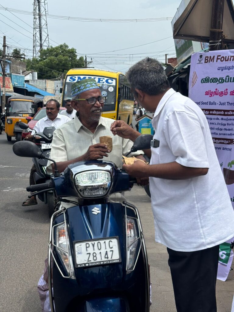கோட்டக்குப்பத்தில் பசுமைப் புரட்சி: பி.எம். பவுண்டேஷன் சார்பில் 1000 விதைப்பந்துகள் வழங்கல்.