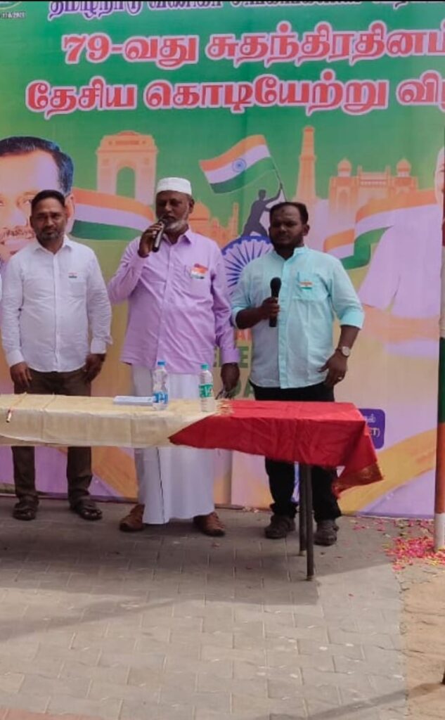இந்நிகழ்வில், சங்கத் தலைவரும், தமிழ்நாடு வணிகர் சங்கங்களின் பேரமைப்பின் மாநில இணைச் செயலாளருமான A. அன்சர் பாஷா தேசியக் கொடியை ஏற்றி வைத்து சிறப்புரையாற்றினார்.