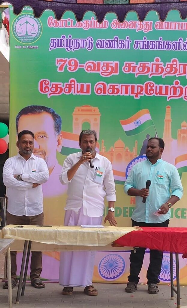 இந்தியாவின் 79வது சுதந்திர தின விழா, தமிழ்நாடு வணிகர் சங்கங்களின் பேரமைப்பு, கோட்டக்குப்பம் அனைத்து வியாபாரிகள் சங்கம் சார்பில் சிறப்பாகக் கொண்டாடப்பட்டது.