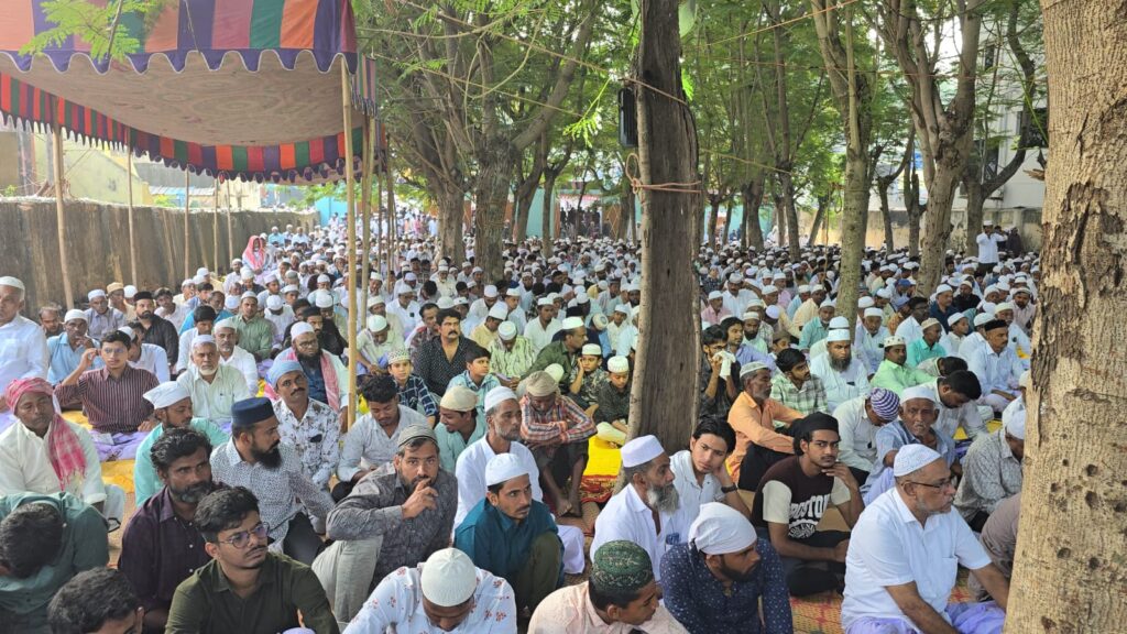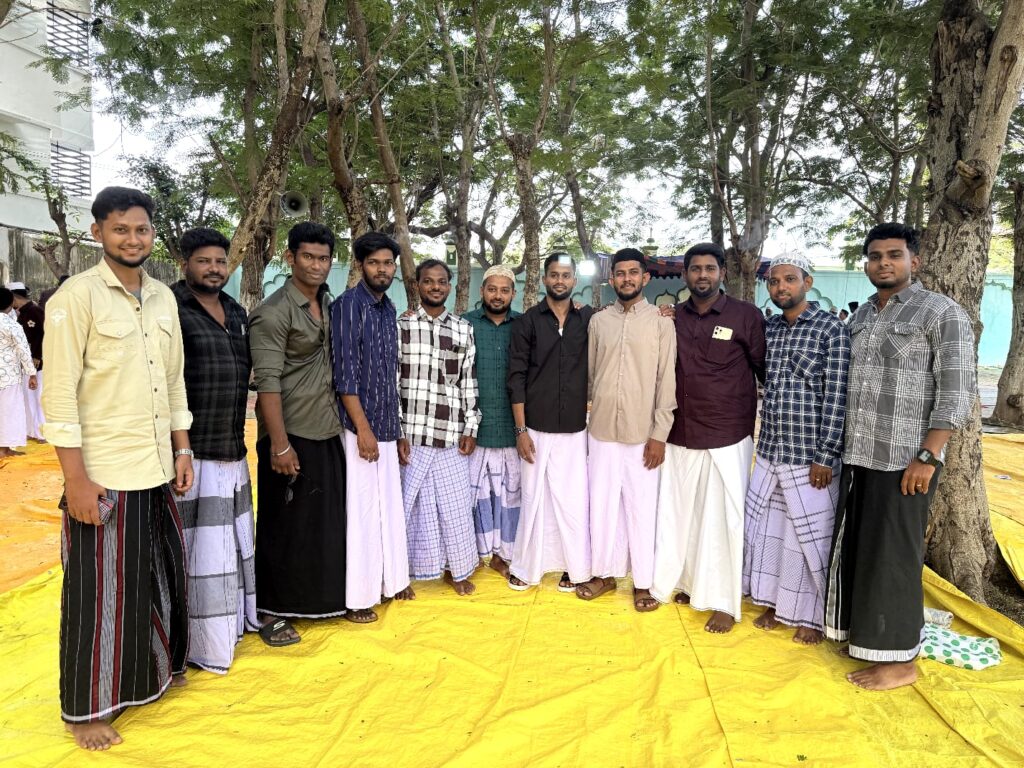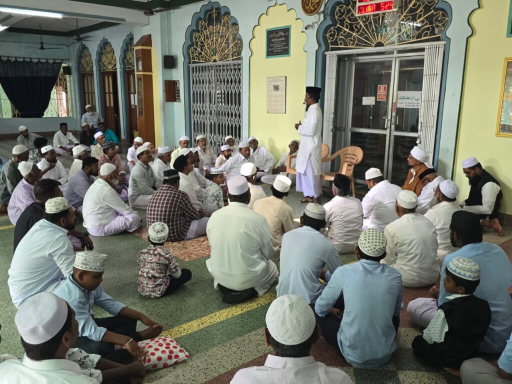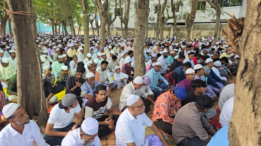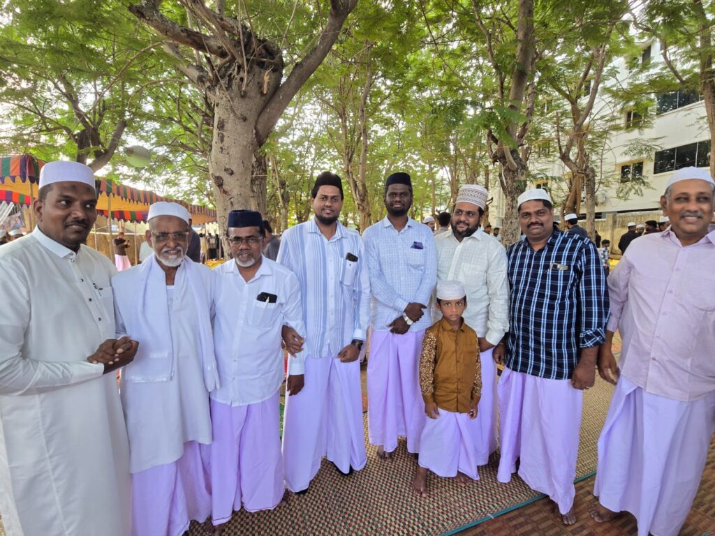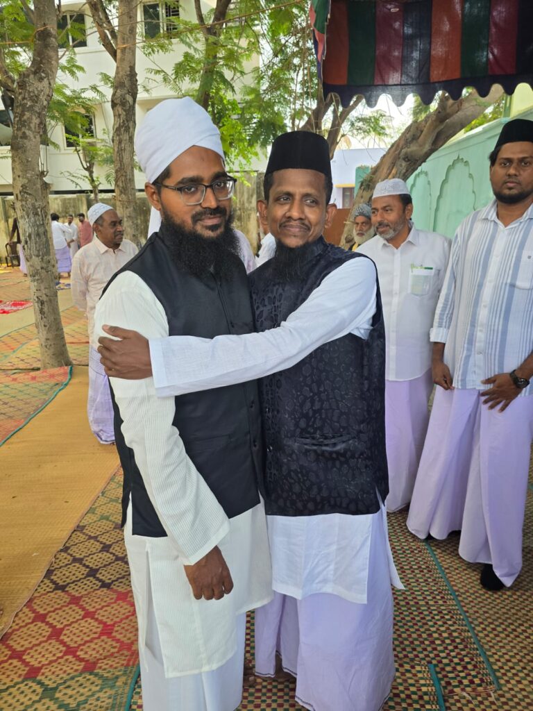 இதில், மௌலவி ஹாபிழ் S.A. முஹம்மது புஹாரி அன்வாரி அவர்கள் கலந்துகொண்டு சிறப்பு சொற்பொழிவு (பயான்) ஆற்றினார். தனது உரையில், “நல்ல நண்பர்களைத் தேர்ந்தெடுத்தல், தீய பழக்கங்களில் இருந்து விலகி இருத்தல் மற்றும் இளைஞர்களை நல்வழிப்படுத்துதல்” உள்ளிட்ட கருத்துகளை அவர் ஆழமாக வலியுறுத்திப் பேசினார். தொடர்ந்து, காலை 7:30 மணிக்கு ஈத்கா மைதானத்தில் சிறப்புத் தொழுகை நடைப்பெற்றது.