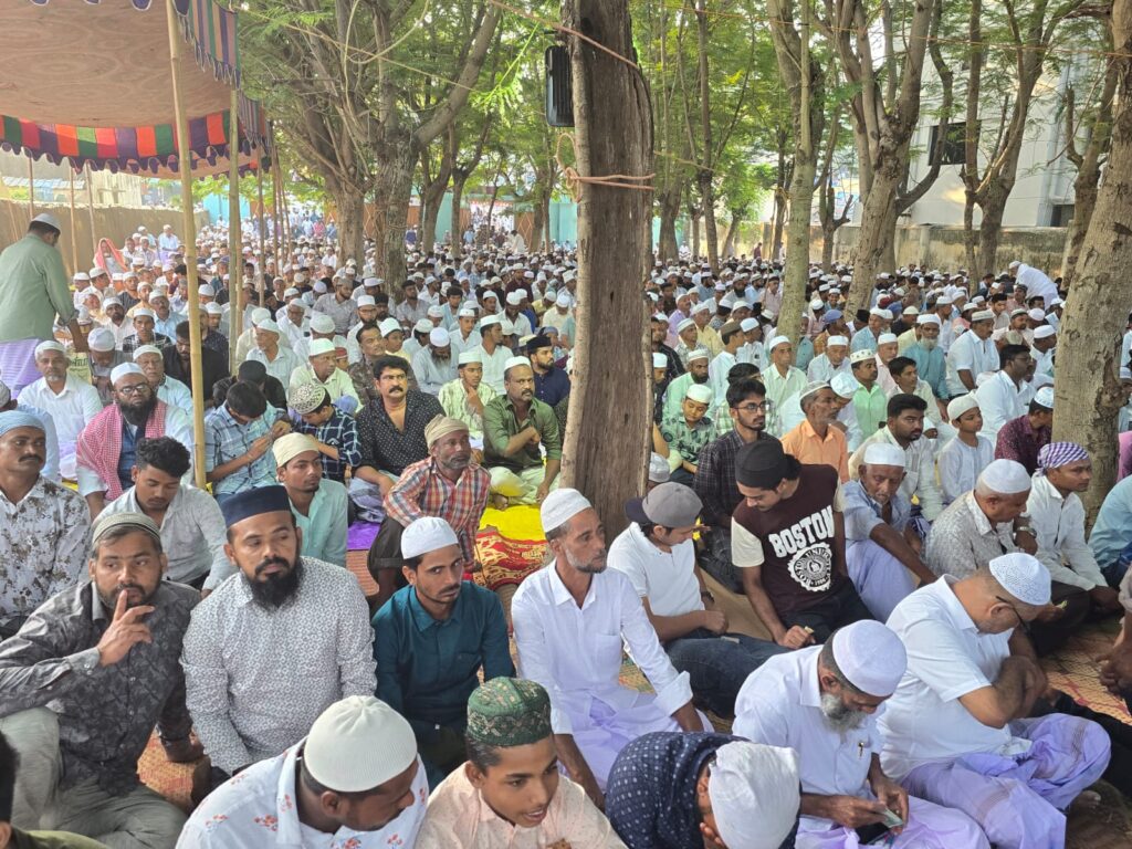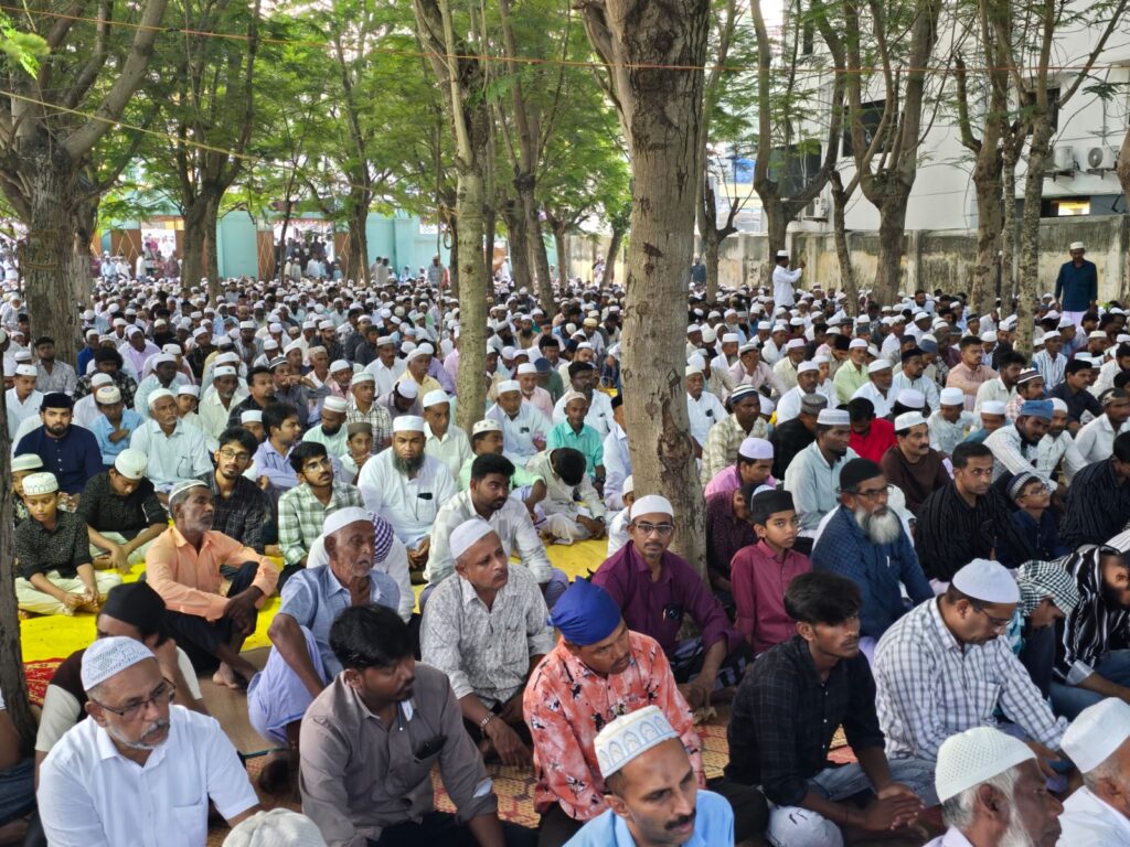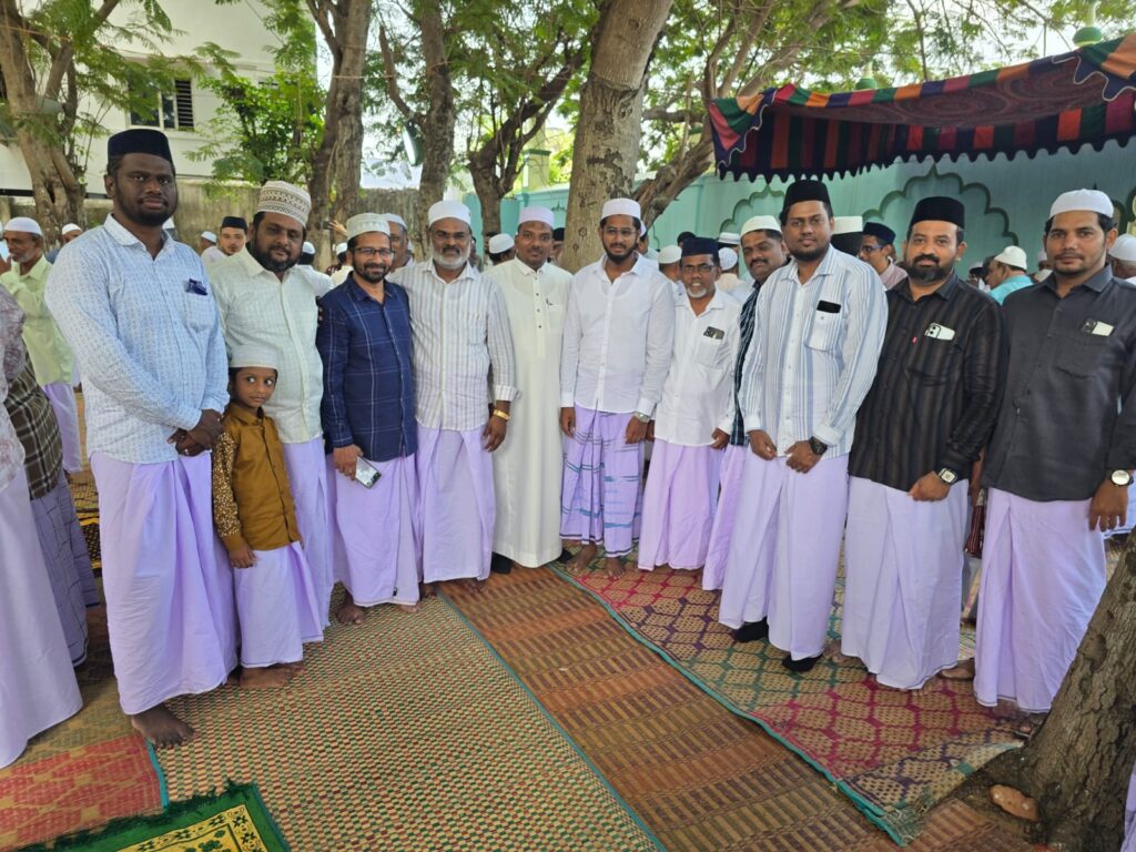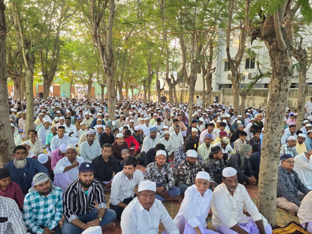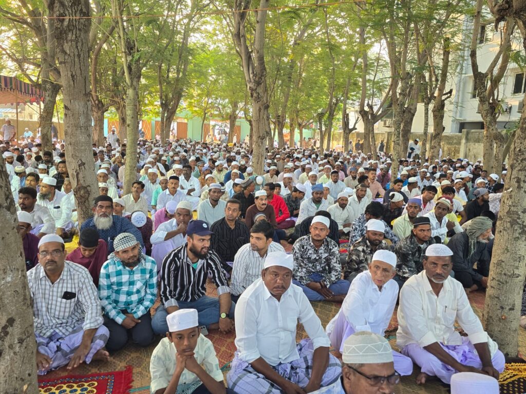 முன்னதாக, பெருநாள் தொழுகைக்காக இன்று காலை 6:45 மணியளவில் ஜாமிஆ மஸ்ஜித் பள்ளிவாசல் அருகே ஜமாத்தார்கள் அனைவரும் ஒன்றுகூடினர். அங்கிருந்து அவர்கள் தக்பீர் முழக்கங்களை எழுப்பியவாறு, ஈத்கா மைதானத்தை நோக்கிச் சென்றனர்.