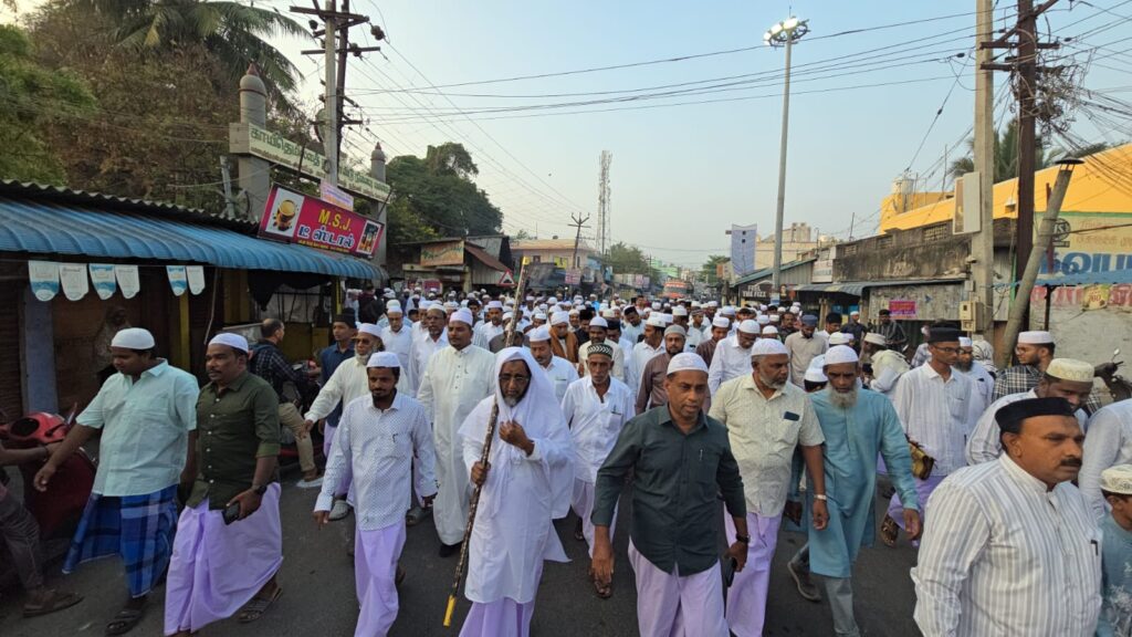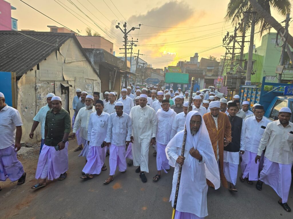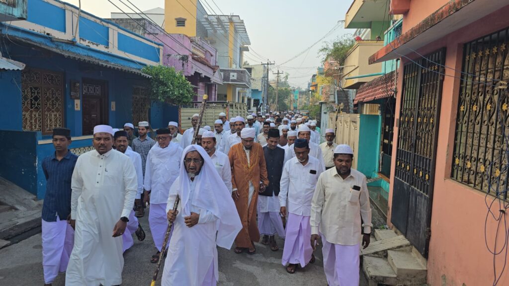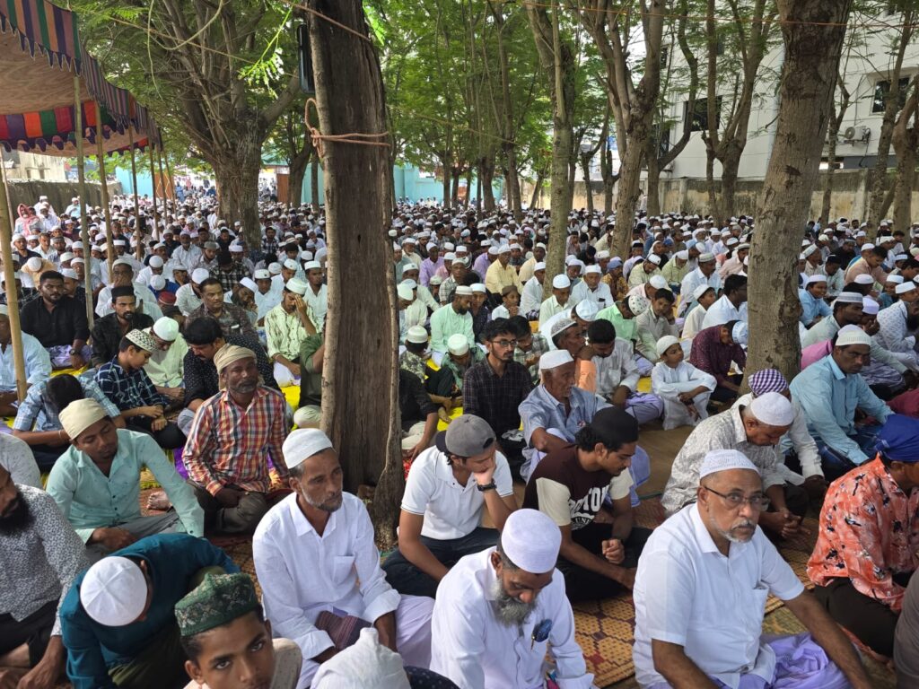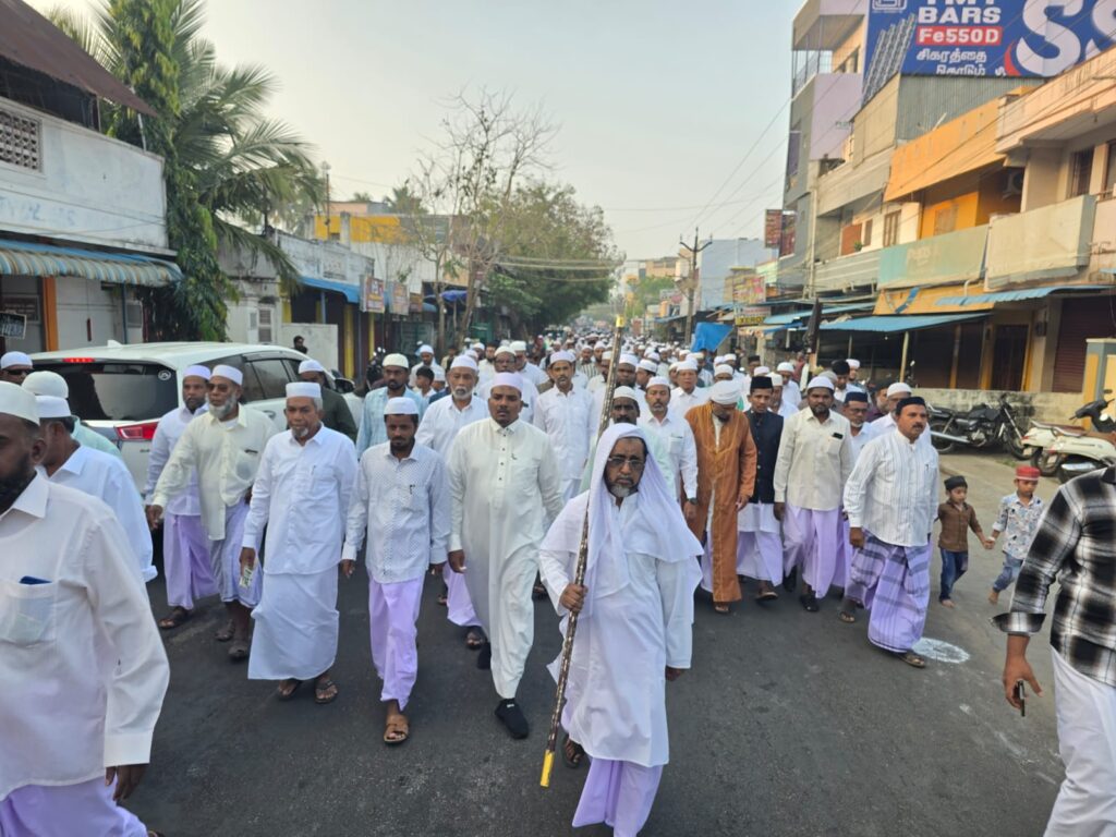 முன்னதாக, பெருநாள் தொழுகைக்காக இன்று காலை 6:45 மணியளவில் ஜாமிஆ மஸ்ஜித் பள்ளிவாசல் அருகே ஜமாத்தார்கள் அனைவரும் ஒன்றுகூடினர். அங்கிருந்து அவர்கள் தக்பீர் முழக்கங்களை எழுப்பியவாறு, ஈத்கா மைதானத்தை நோக்கிச் சென்றனர்.